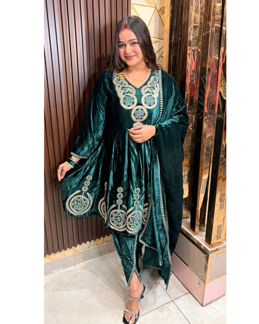 Sira-green velvet suit