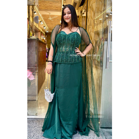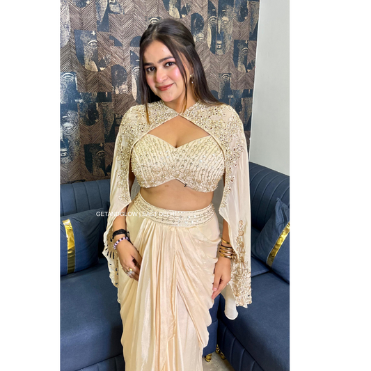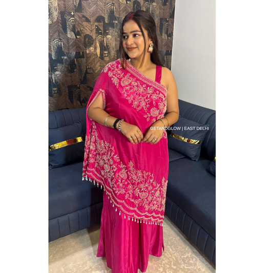 Celebrity Inspired -Short Top And Harrom Pants With Drape Dupatta