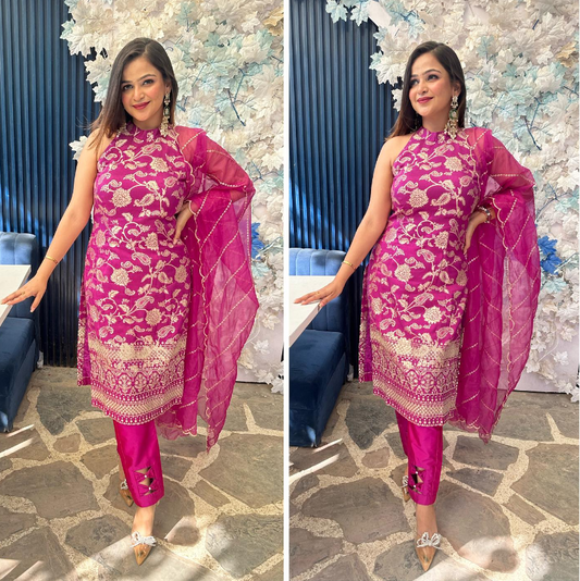 Celebrity Inspired -Short Top And Harrom Pants With Drape Dupatta