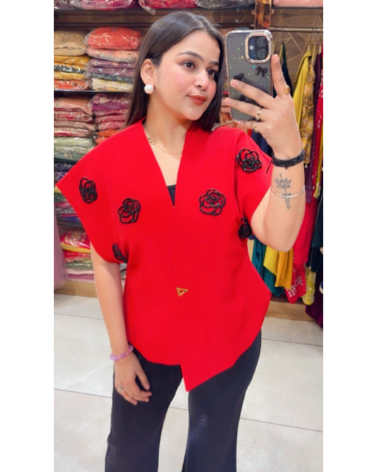 ROSA-EMBELLISHED TOP