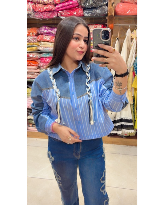 GIA- " WHITE SHIRT WITH DENIM SHIRT BUSTIER"
