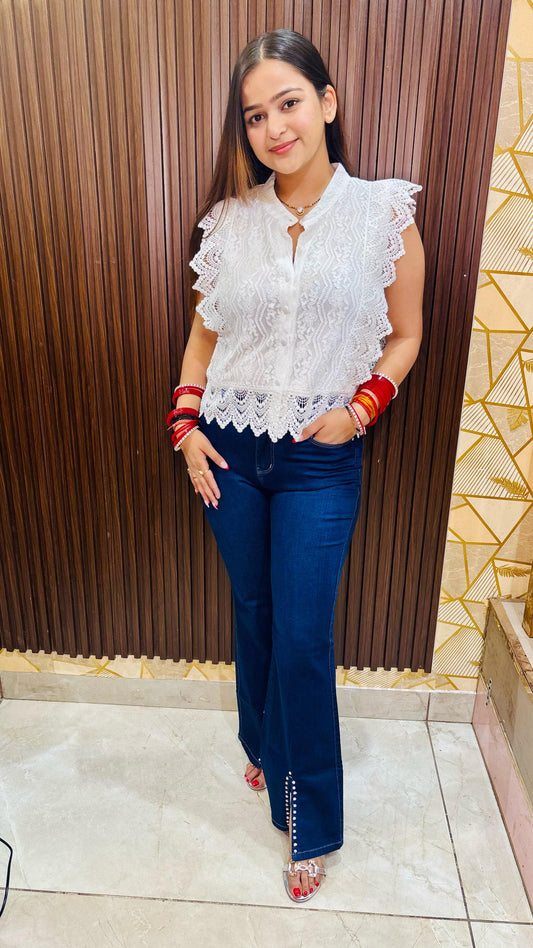 GIA- " WHITE SHIRT WITH DENIM SHIRT BUSTIER"
