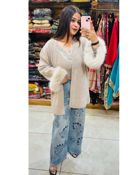 FUR EMBELLISHED CORDSET