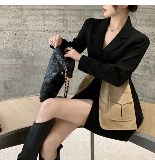 "AHANA" BLAZER DRESS WITH DETACHABLE HIGH NECK PONCHO + CHAIN