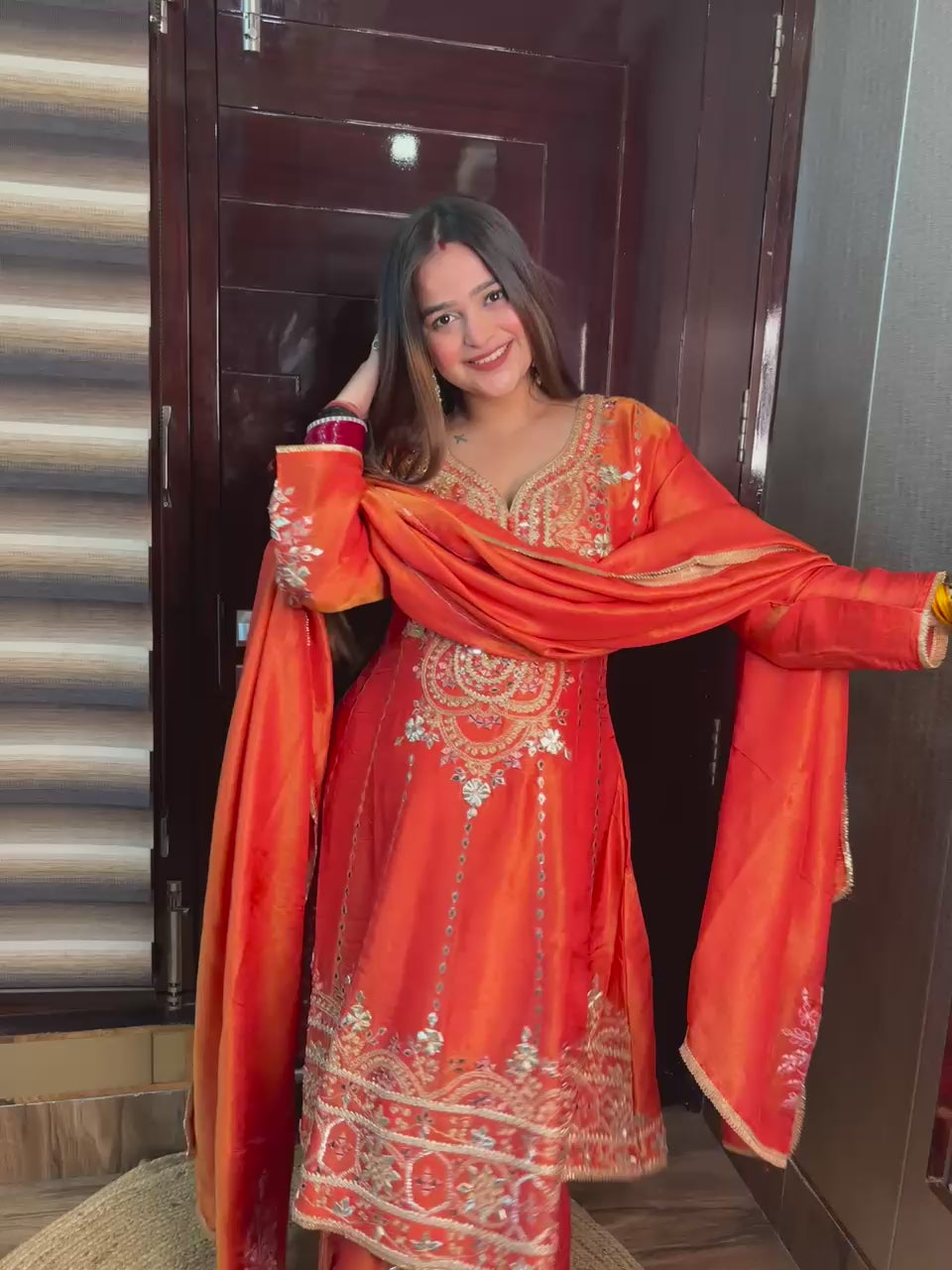 Experience luxury and elegance with our "ALIA" TANGY GHARARA SUIT. Made with high-quality fabrics, this suit exudes confidence and style. The tangy color adds a pop of vibrancy, making you stand out in any occasion. Elevate your wardrobe with this must-have piece.