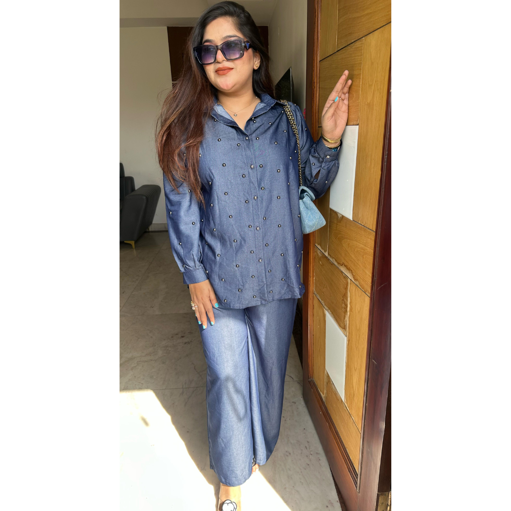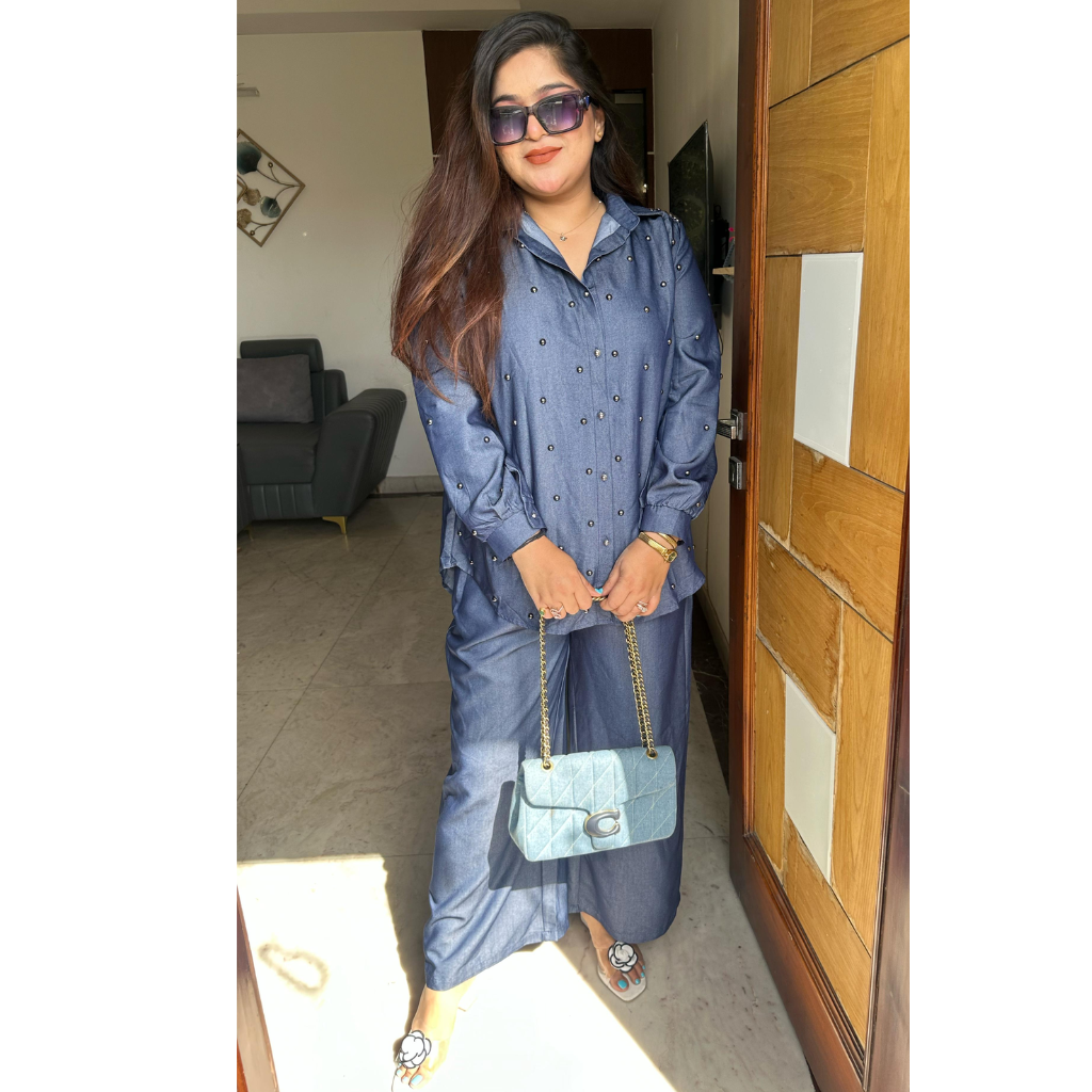 Elevate your style with the "ASRA" DENIM COORDS. Made with high-quality denim, these stylish coordinates offer a fit that effortlessly flatters your figure. Perfect for any occasion, these co-ords will become a staple in your wardrobe, giving you a versatile and fashionable look that will never go out of style. Upgrade your closet with these must-have "ASRA" DENIM COORDS today!