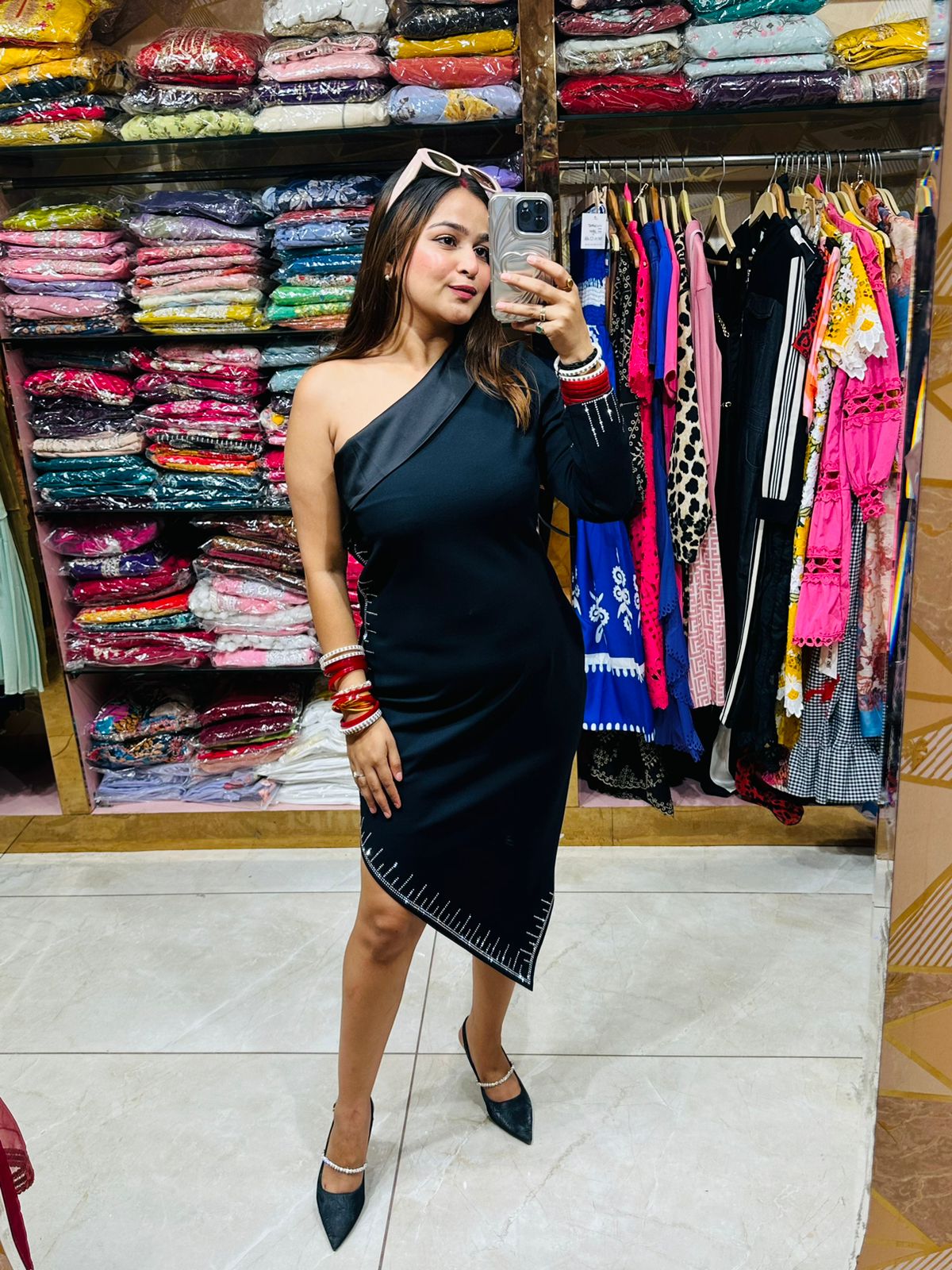 Adorned with sparkling swaroski crystals, it's the ultimate party wear. Stand out and make a statement with this stunning dress!