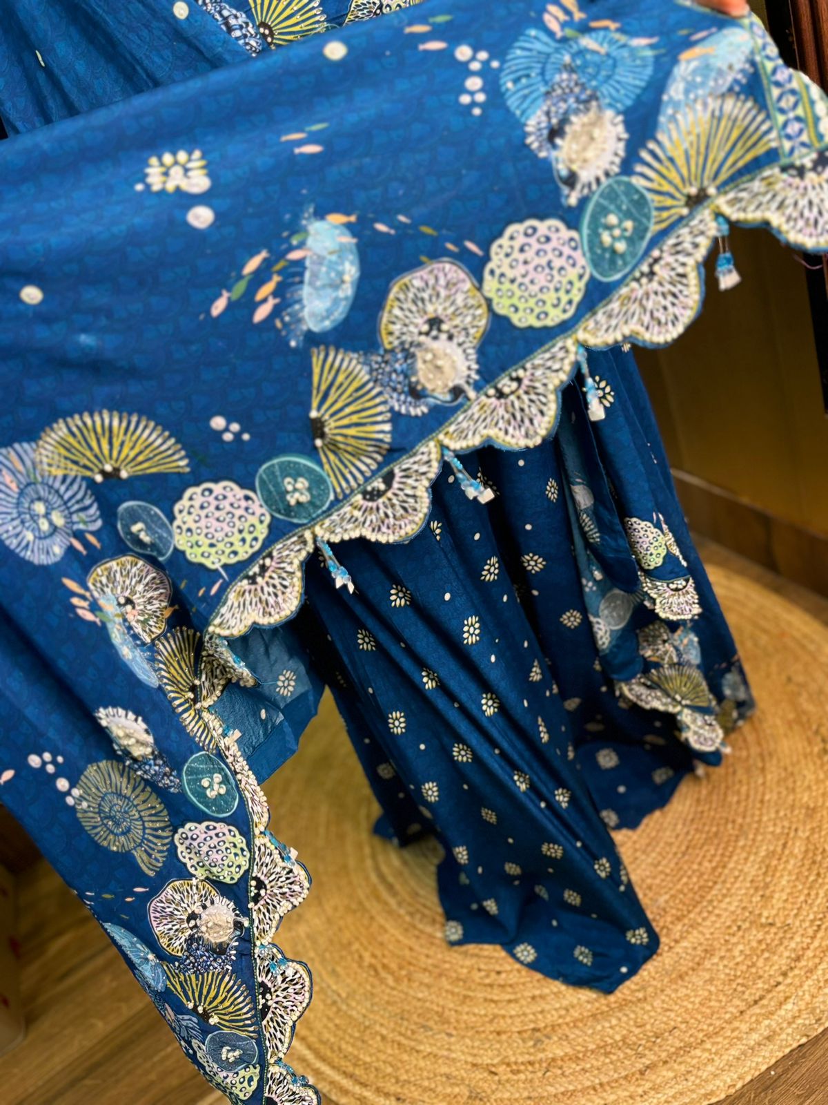 Made with high-quality crepe pure fabric and adorned with exclusive prints, each jacket is handcrafted with intricate handwork all over.