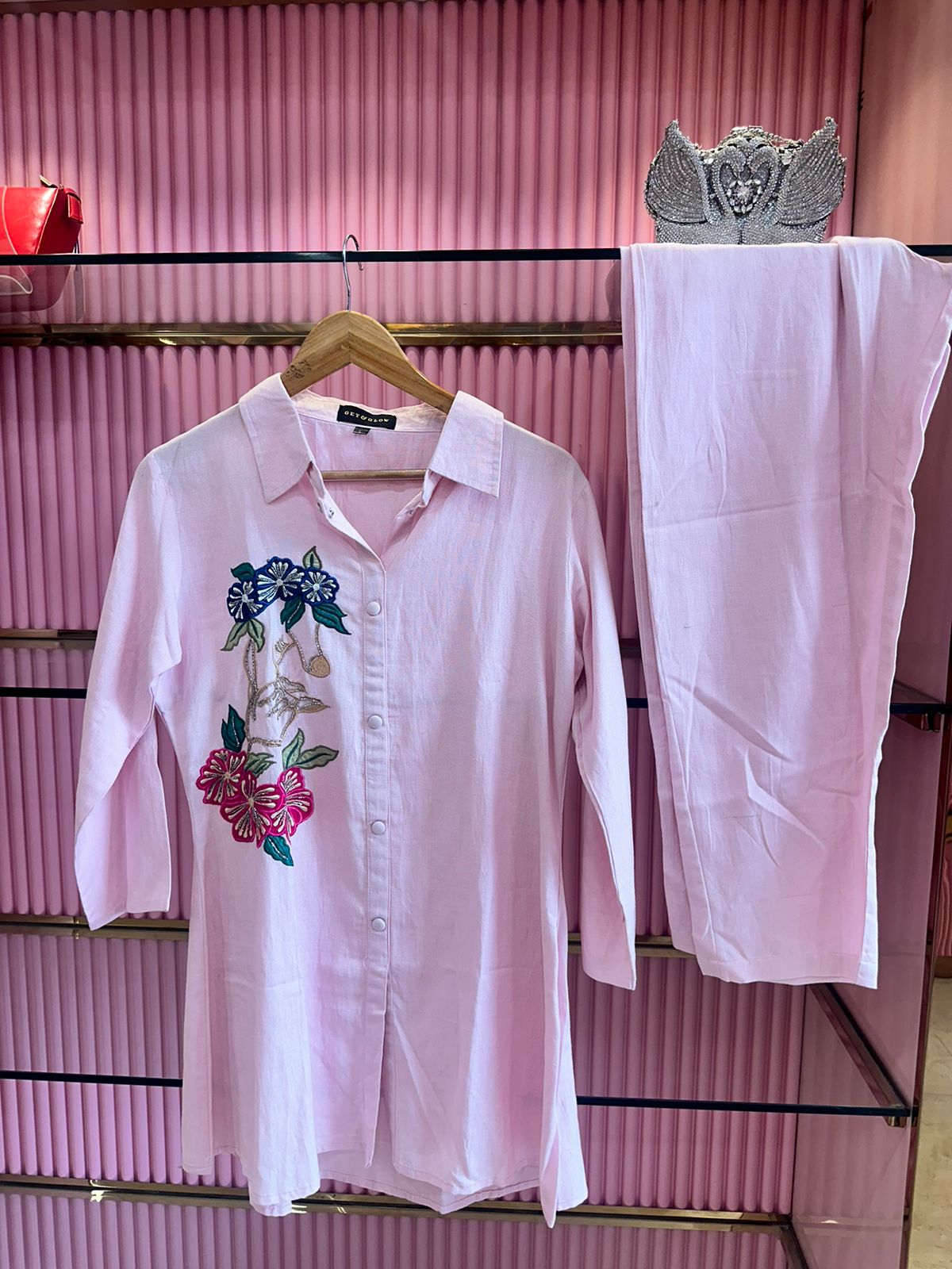 Our relaxed cotton fabric, thread embroidery, and baby pink color come together to make a signature look that will have you feeling breathable and ready to go out and show off your style!