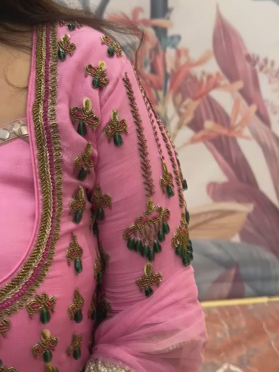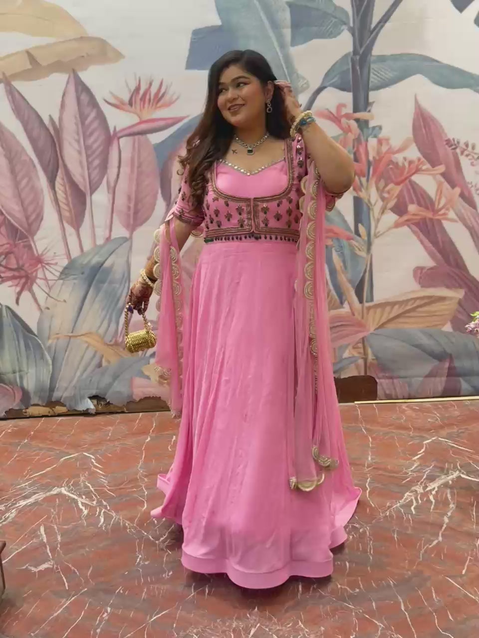 Elevate your fashion game with the "GULABO" DESIGNER ANARKALI SUIT! Made of luxurious chinnon fabric, this 3-piece suit features a padded strap dress with kankan for a flattering fit. The full loaded handwork designer jacket adds a touch of opulence, while the dupatta with laces completes the look. Perfect for premium occasions.