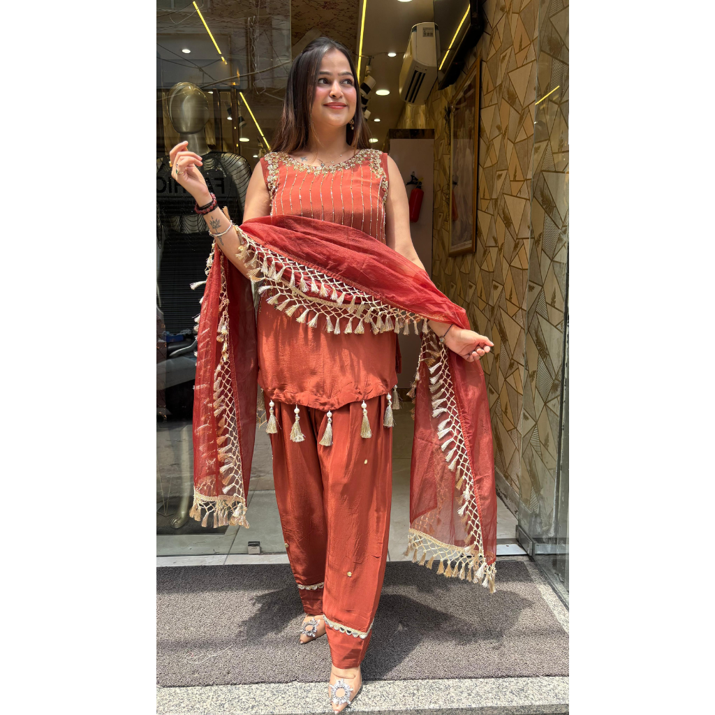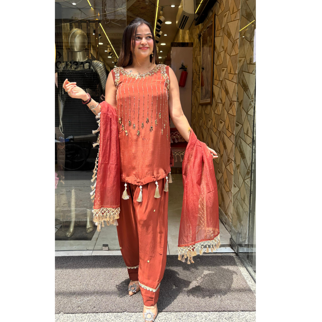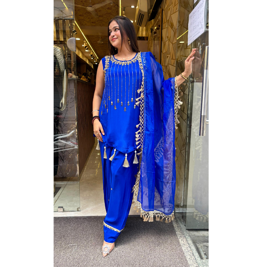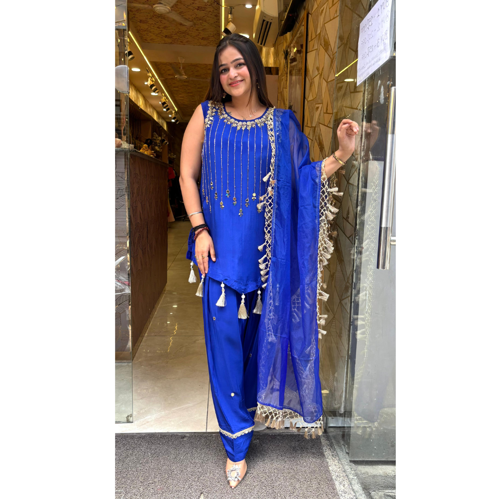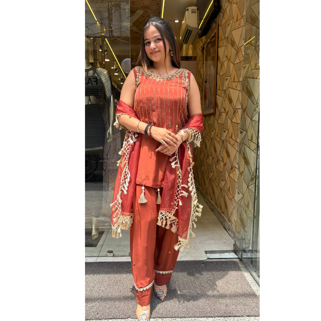 Elevate your wardrobe with the "GUNEET" Designer Suit, a perfect blend of elegance and comfort. Crafted with exquisite attention to detail, this suit promises a flattering fit and timeless style that makes every occasion special. Experience confidence and grace in a design that stands out effortlessly. Perfect for those who value sophistication and quality in their attire.
