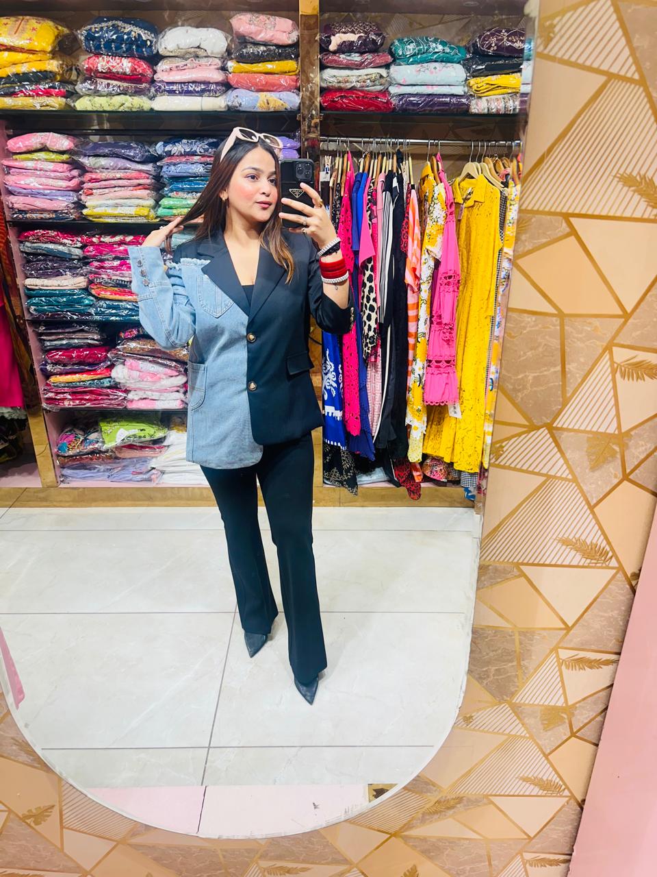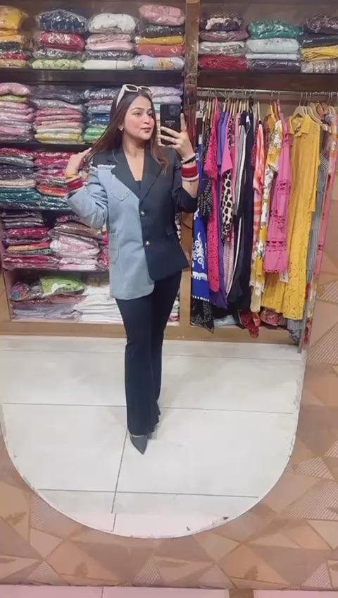 Featuring a unique half denim, half blazer look, this designer piece will elevate any outfit.