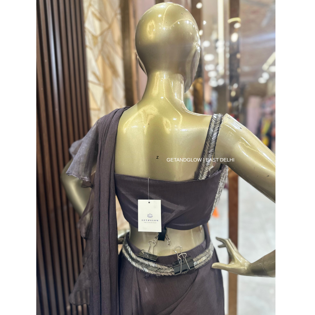 Elevate your style with the "MADHY" Designer Drape, crafted to offer a perfect blend of elegance and modern flair. This designer drape enhances any outfit with its sophisticated fall and intricate detailing, making you stand out effortlessly at every occasion. Experience the confidence that comes with wearing a distinctive piece designed to showcase your unique taste while providing comfort and grace throughout the day. Make "MADHY" your go-to choice for timeless fashion that speaks volumes.