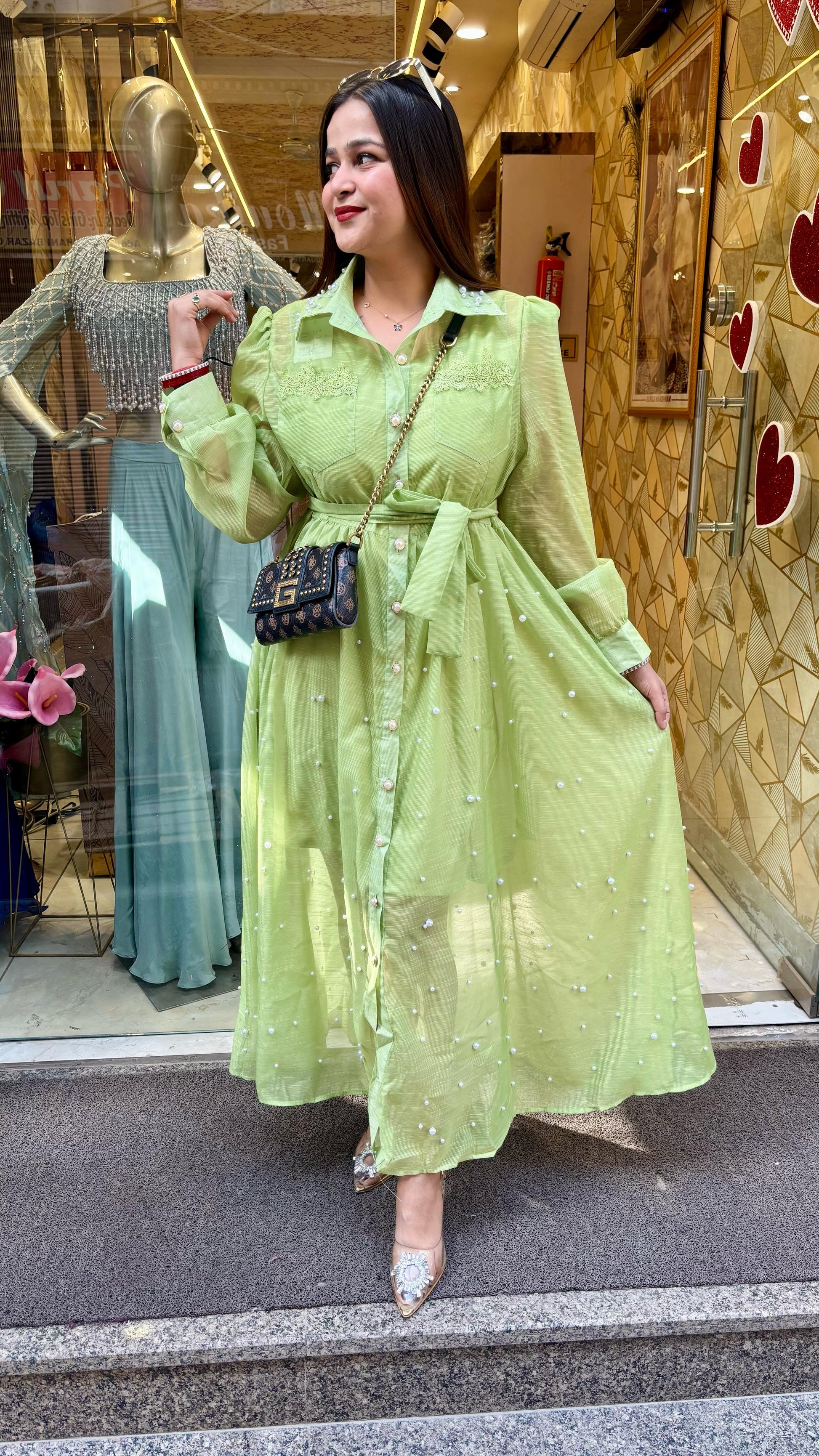 Elevate your wardrobe with the MAHIRA PEARL DRESS. This designer dress comes with an inner lining for a comfortable fit. Adorned with stunning pearls, this dress adds an elegant touch to any occasion. Upgrade your style and make a statement with the MAHIRA PEARL DRESS.