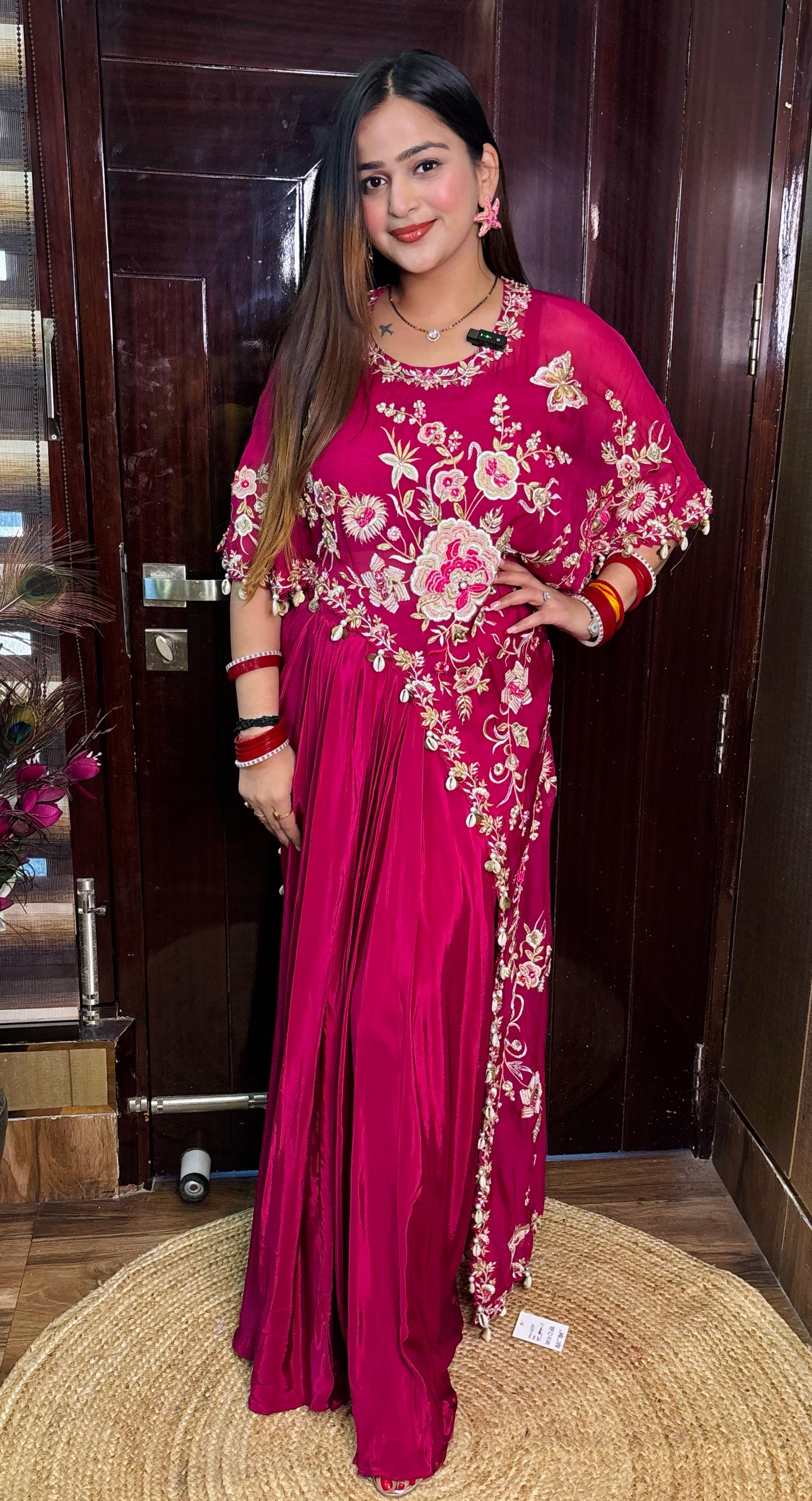 Introducing "MEERA" GULABI INDOWESTERN! Elevate your style with this stunning and unique fusion outfit. Perfect for any occasion, its vibrant pink color and Indo-Western design will make you stand out in a crowd. Make a statement and unleash your inner fashionista with "MEERA" GULABI INDOWESTERN!