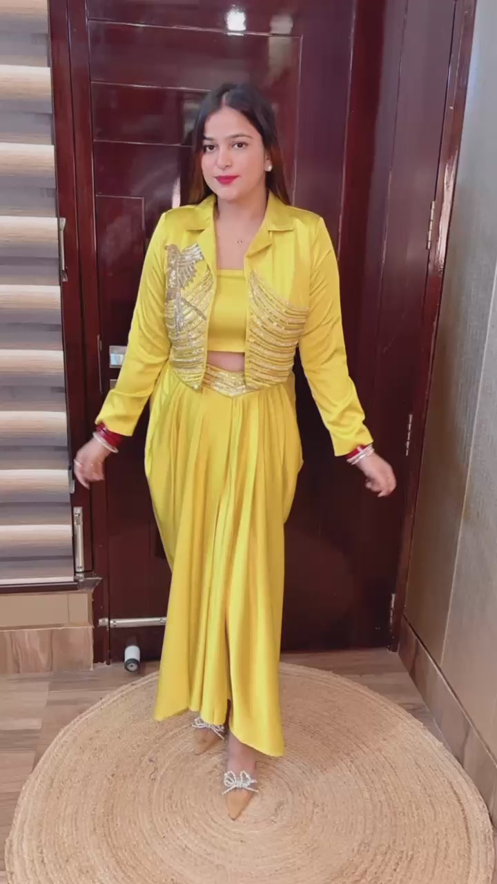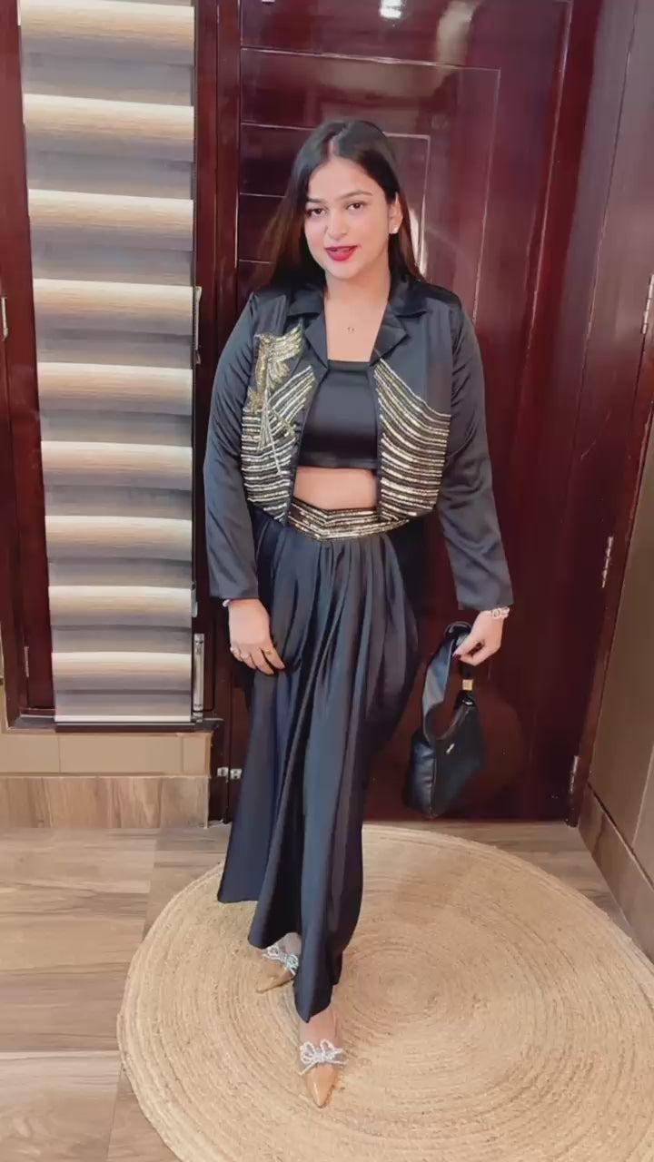 Made with high-quality crepe fabric and adorned with intricate handwork, this set is perfect for any party or special occasion.