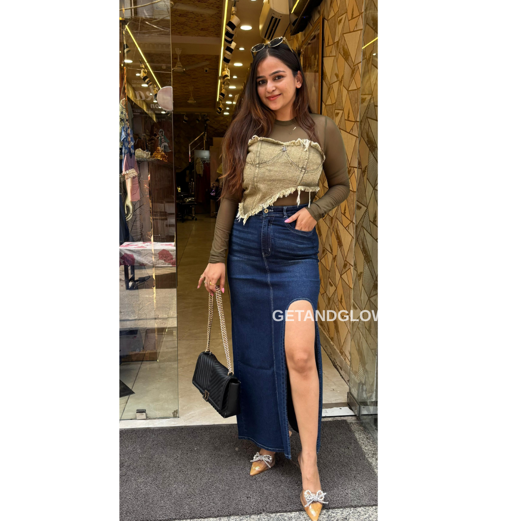 Elevate your style with the Mesh Denim Top, blending edgy denim with breathable mesh for a bold, contemporary look. Perfect for layering or wearing solo, this top offers comfort and a unique texture that stands out. Ideal for casual outings or trendy events, it adds a fresh twist to your wardrobe essentials.