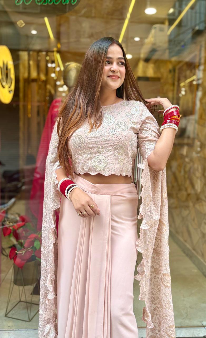 Experience elegance and comfort with our Peach Kia Skirt Set.