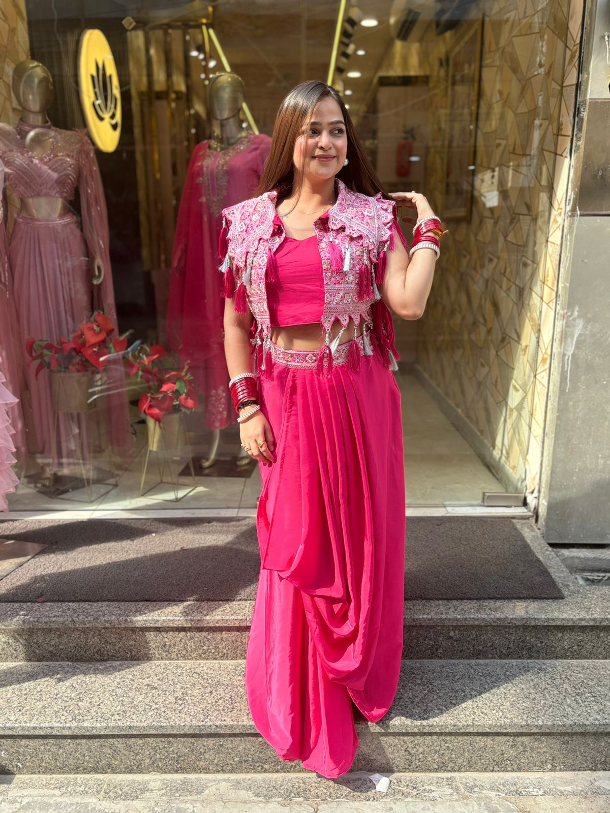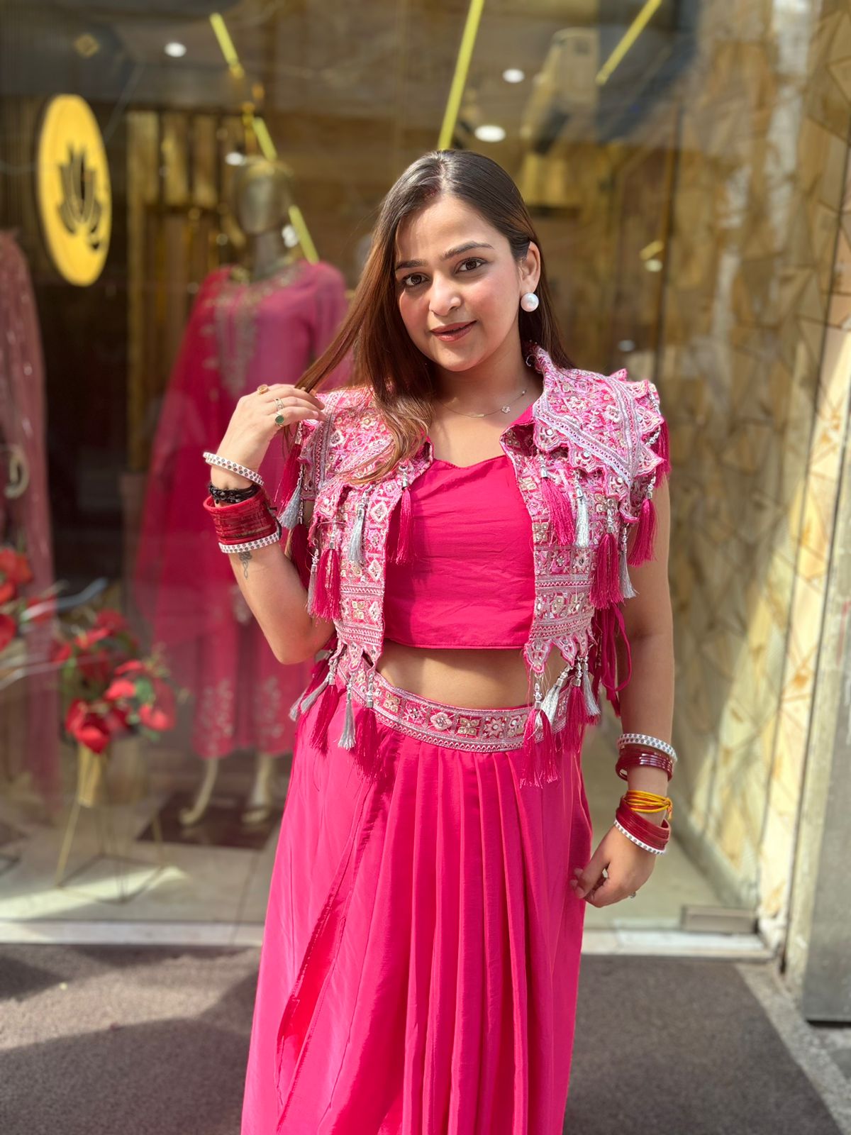 Introducing our vibrant Pink Jacket skirt Style Outfit!