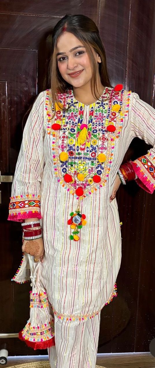 Elevate your style with our PomPom Mirror Coordset with Potli!