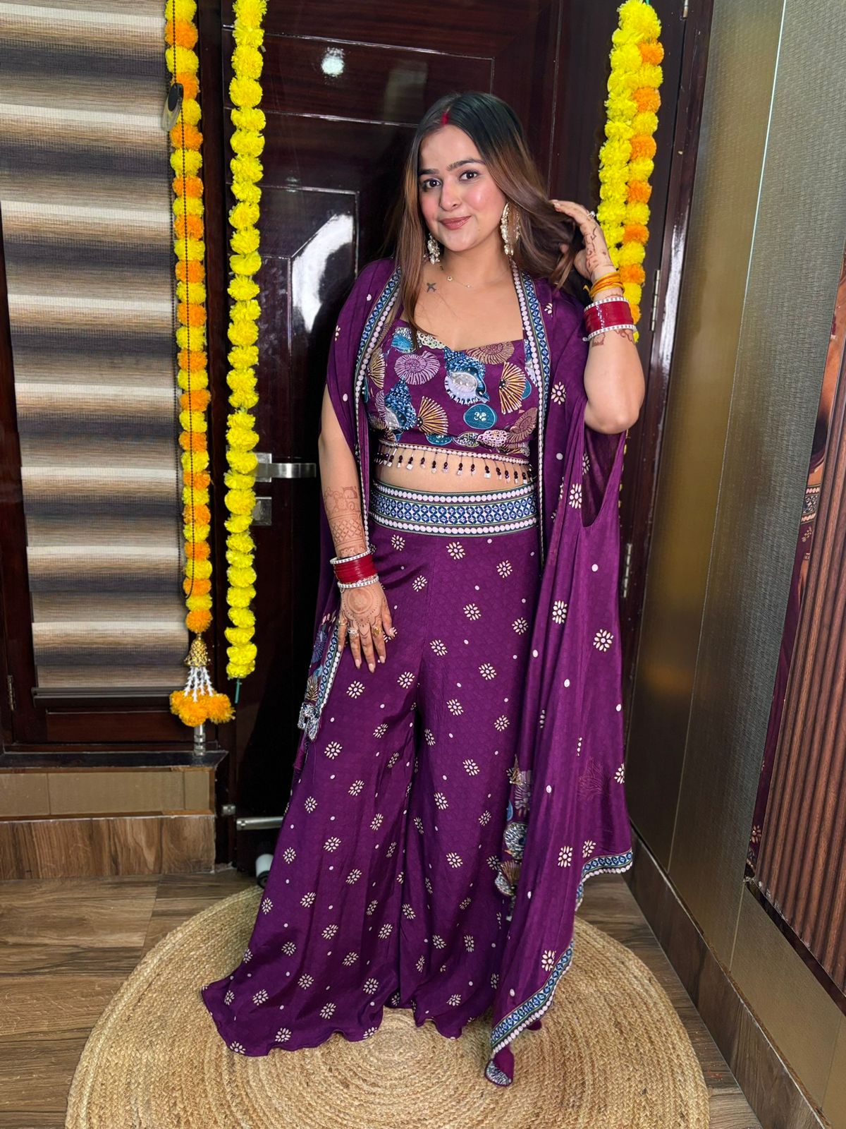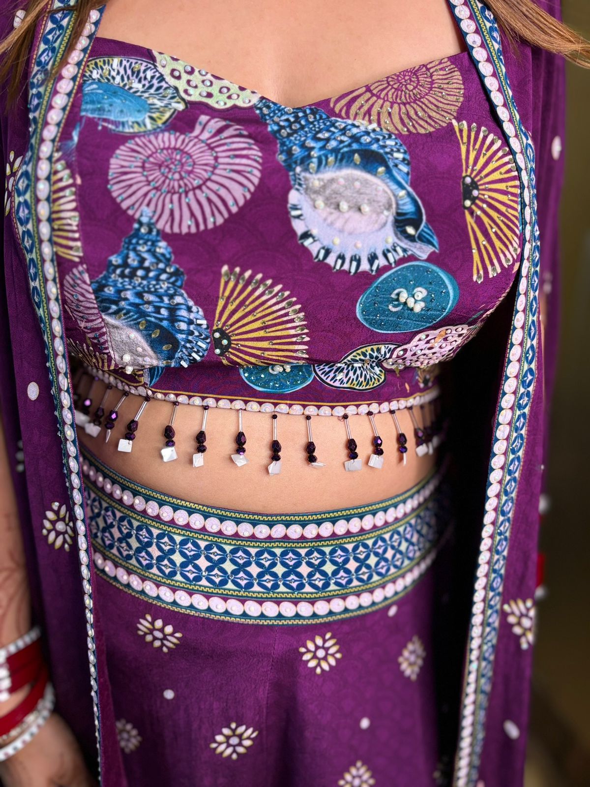 Elevate your style with our Purple Crepe Jacket Luxe Style.