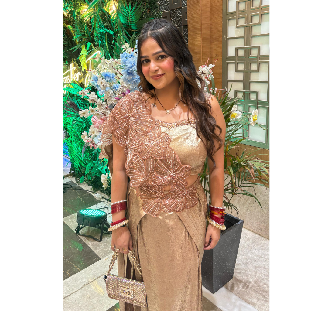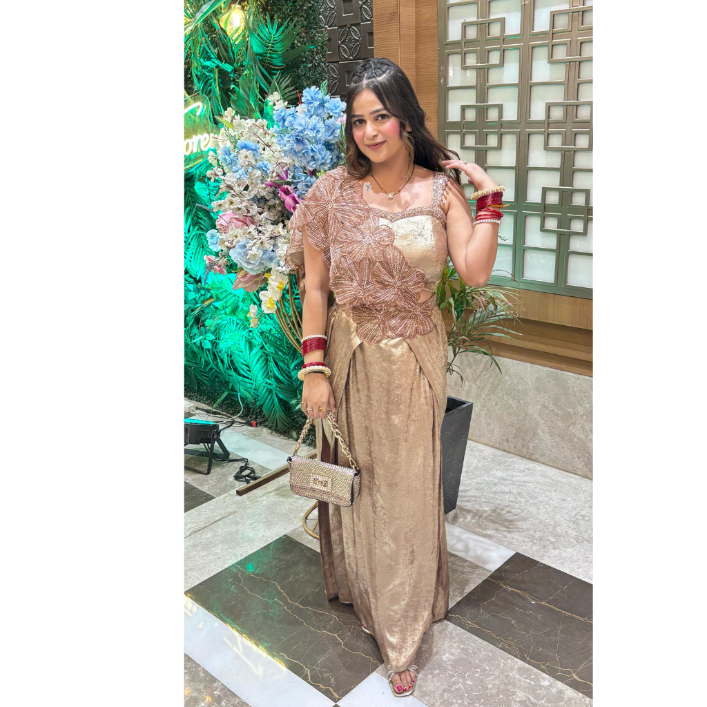 Unleash your inner goddess with the "QATAL" METTALIC DRAPE. Made with shimmering metallic fabric, this drape adds a touch of elegance and glamour to any outfit. Perfect for special occasions, it will make you stand out and feel confident. Elevate your style with the "QATAL" METTALIC DRAPE!