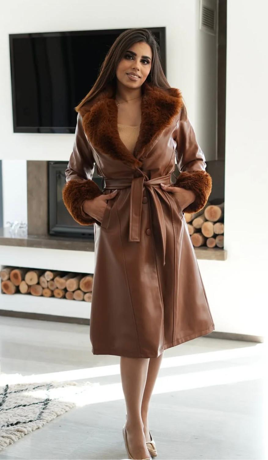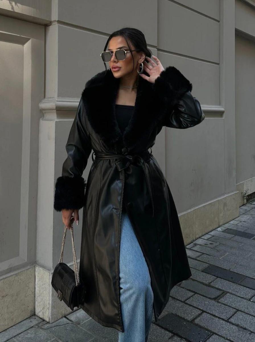 Indulge in luxury with the "QUEEN-ERA" fur leather long coats.