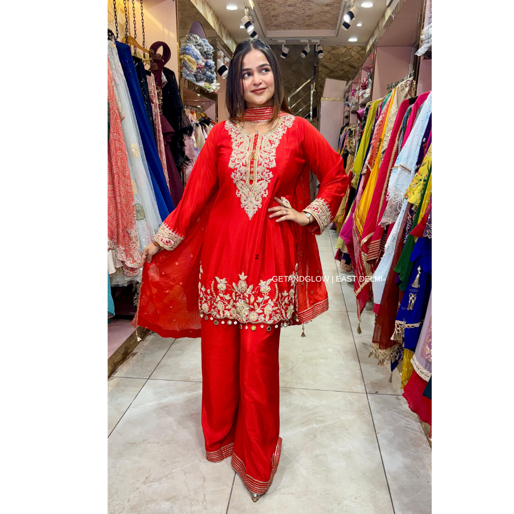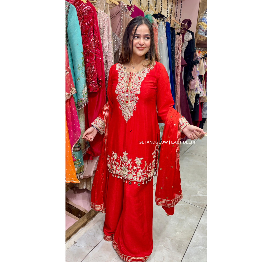 Experience elegance with the "SEEMA" Designer Suit, crafted to highlight your style and grace. This exquisite outfit features fine fabrics and meticulous detailing that ensure comfort and a flawless fit. Perfect for festive occasions or special gatherings, it promises to make you stand out with its sophisticated design and vibrant charm. Elevate your wardrobe with the "SEEMA" Designer Suit and embrace timeless beauty effortlessly.