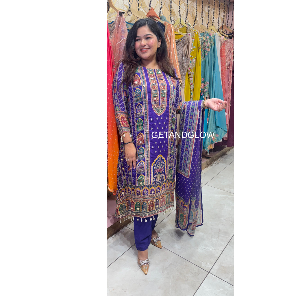 Elevate your wardrobe with the "SHANAYA" Designer Suit, a perfect blend of elegance and contemporary style. Crafted with attention to detail, this suit offers a flattering fit and exquisite design that enhances your presence at any occasion. Experience comfort without compromising on sophistication, making it an ideal choice for those who appreciate refined fashion. Make a statement effortlessly with the "SHANAYA" Designer Suit.