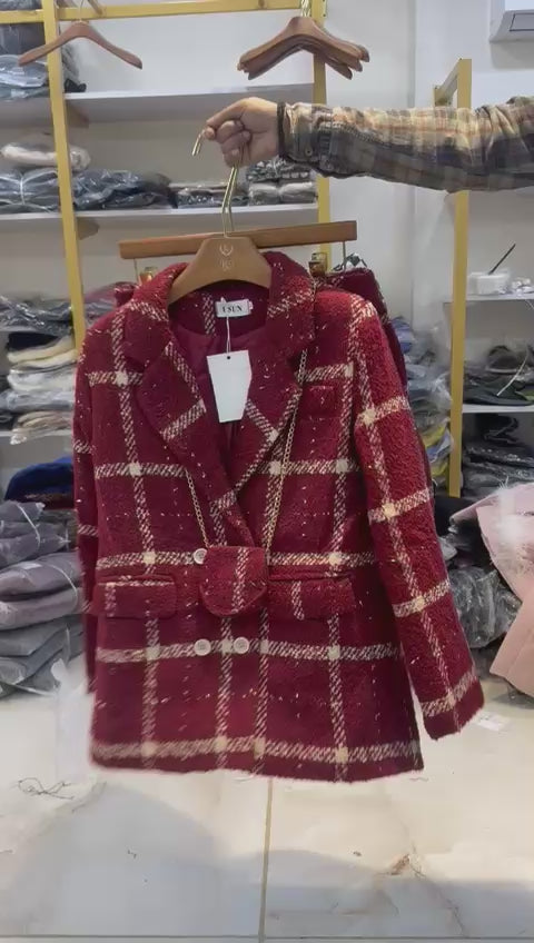 Elevate your wardrobe with our Tweed Design Blazer, Shorts, and Bag set.