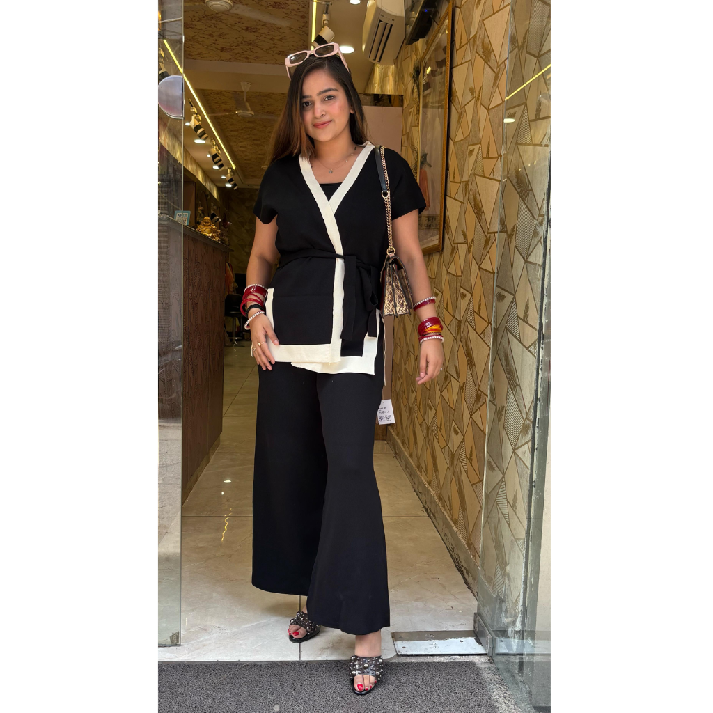 Introducing the must-have piece for every fashionista: our Wrap on Black Coords! Featuring a chic wrap design and classic black color, these coordinates will elevate any outfit and make you stand out from the crowd. Don't miss out on this versatile and stylish addition to your wardrobe.