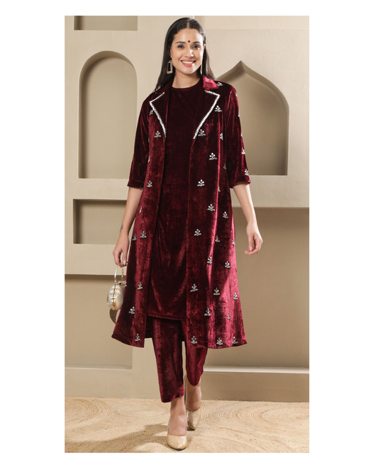 KAREEN -LONG VELVET DRESS WITH POTLI